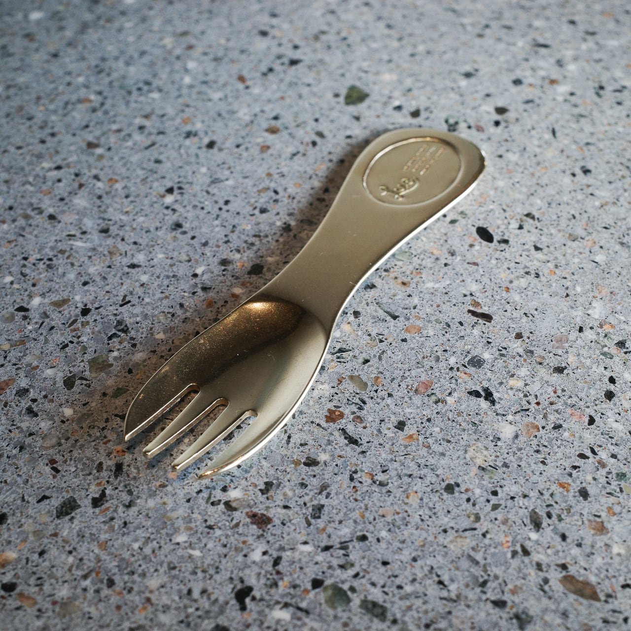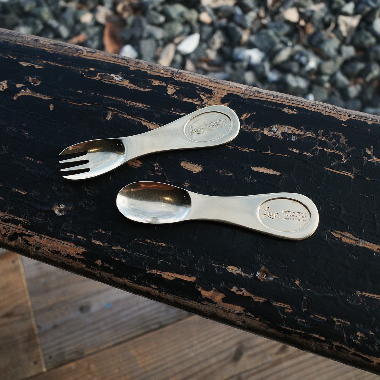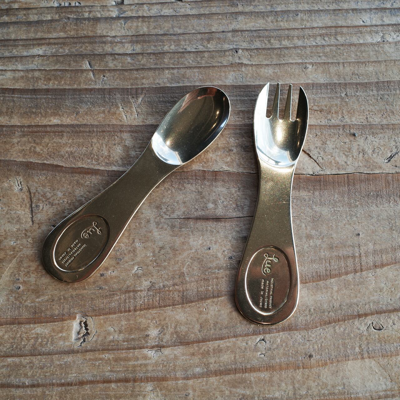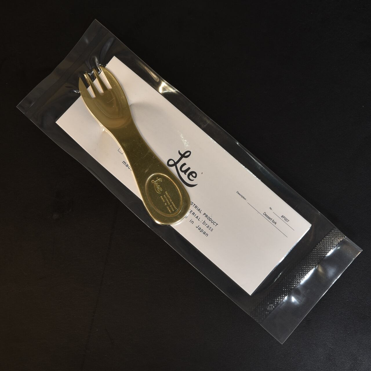 岡山県瀬戸内市を拠点として、真鍮製を中心としたハンドクラフトのカトラリー・雑貨・アクセサリーを作っているLueのインダストリアルラインから、真鍮製のデザートフォークです。