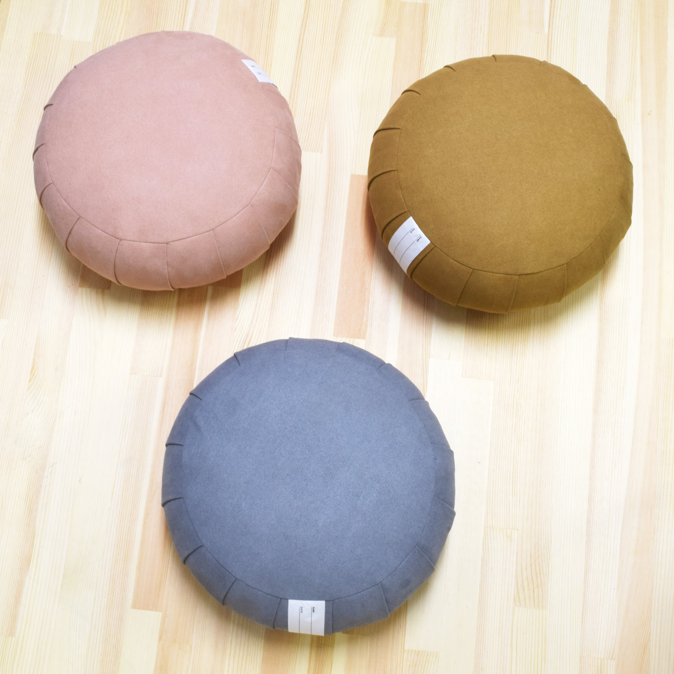 天然素材の「パンヤ」をすべて手詰めすることで坐禅に適した独特な硬さに仕上げています。 生地はすべりにくいスウェード調の生地を使用し、より坐禅に集中することができます。
