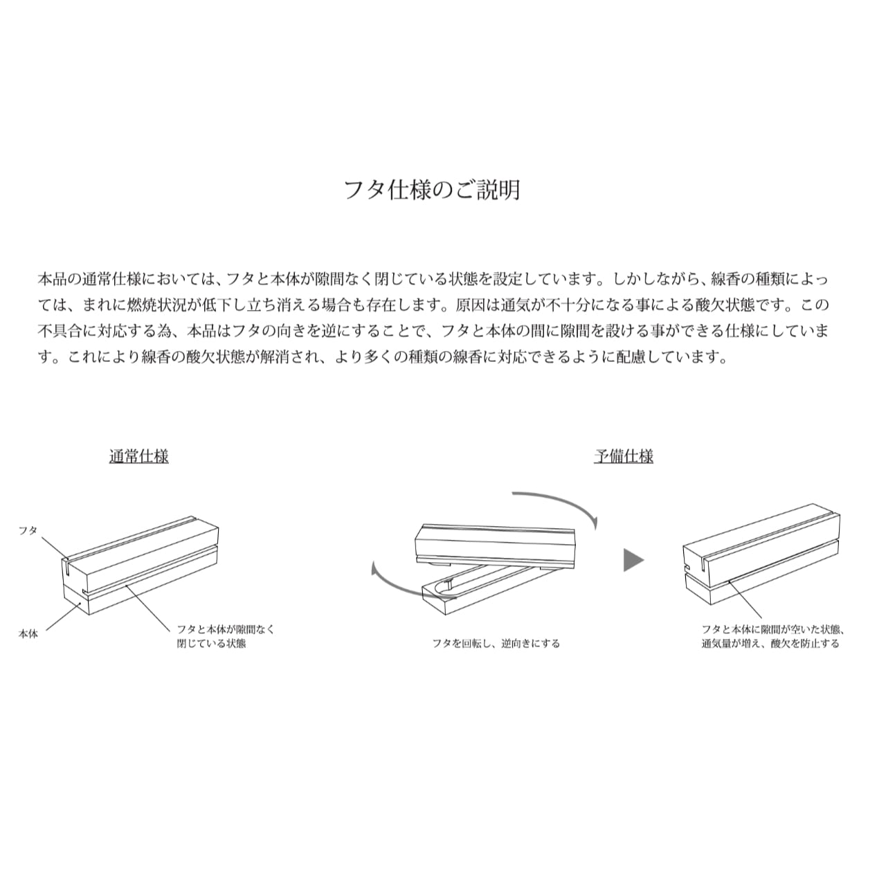 ※煙の少ない事をうたっているお香の場合、蓋を閉めると消えてしまう可能性があります。